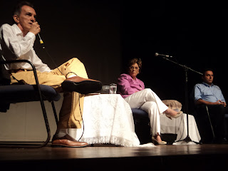 Ramon (Catorze) perguntou das iniciativas de incentivo ao artista. Respostas vazias. Henrique Fontes (Casa da Ribeira) formulou pergunta contextualizada a respeito da dicotomia equivocada entre política cultural e política de eventos e cobrou as intenções do vínculo da cultura com a educação. E acho que nem vale transcrever as respostas, baseadas em oficinas, formação de plateia em escolas ou incentivadas a partir da realização de eventos.