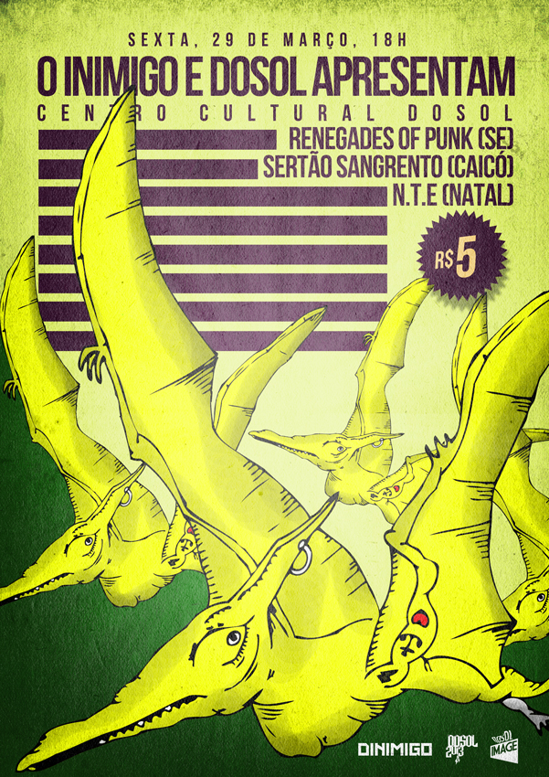 O formato do show é Nano com o Dosol com capacidade para até 120 pessoas. No lineup também estão os ótimo Sertão Sangrento de Caicó e os não menos legais N.T.E, uma das novidades do rock/hc potiguar. Certeza de noitada boa com preço convidativo de apenas 5 mangos. O rock da semana santa tá garantido!