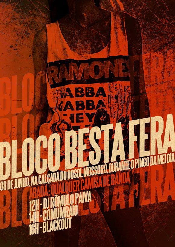 “O Bloco Besta Fera inicia o calendário junino do Centro Cultural Dosol Mossoró, estando à postos para somar junto do já famoso Pingo Da Mei Dia, ponta pé inicial das festividades do Mossoró Cidade Junina. Apresentando-se como o primeiro Bloco roqueiro, o Besta Fera acontecerá na calçada do Centro Cultural Dosol Mossoró, gratuitamente, recebendo música eletrônica com Rômulo Paiva e o coletivo AMP, principal grupo local agitador do estilo, além das COMUMRAIO e BLACKOUT, duas das mais conhecidas bandas na cidade, que serão responsáveis por manter o rock’n’roll bem alto no olho do furacão cultural mossoroense. Convidamos para receber mais esta conquista! No dia 08 de junho, pegue sua camisa de banda favorita e venha escutar rock e eletrônico TAMBÉM!”