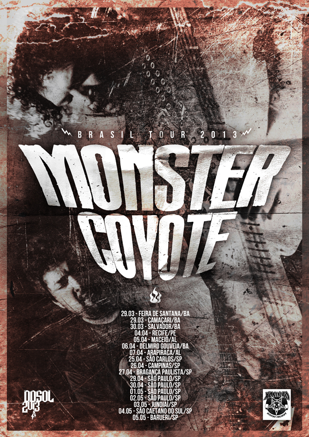 O trio metaleiro mossoroense Monster Coyote está de malas prontas para um extensa tour em 2013. As duas primeiras etapas já estão agendadas para acontecer em março e abril. Confira as datas!